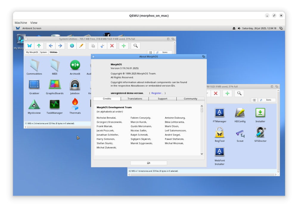 - τα MorphOS συστήματα μπορούν πλέον να χρησιμοποιούν emulated SM502 graphics card